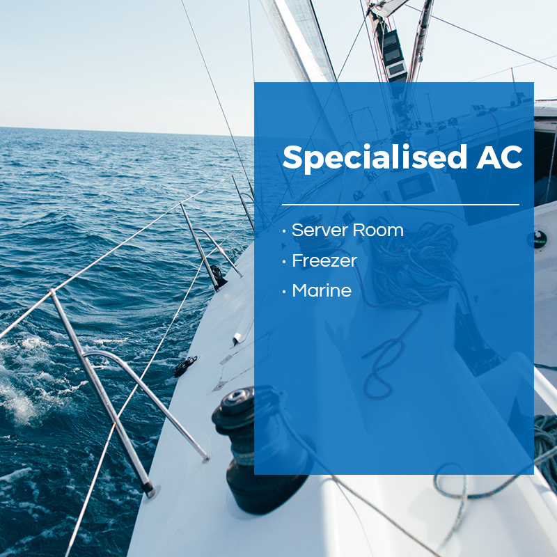 There are 3 different types of Specialised AC: Server Room, Freezer, and Marine.